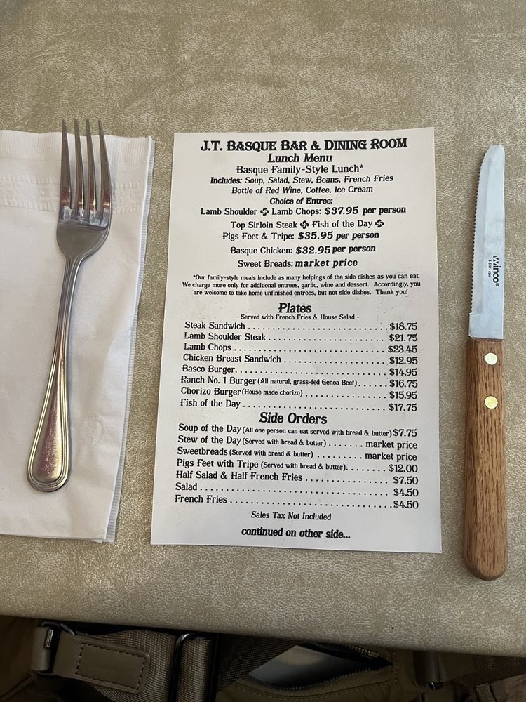 Welcome to J T Basque Bar & Dining Room, a gem nestled in Gardnerville, NV, renowned for its authentic Basque cuisine and family-style dining. The menu serves hearty dishes designed to satisfy, with particularly rave reviews for the lamb burger and pacific cod. Each meal is accompanied by delightful sides, including tossed salad and French fries, that elevate the dining experience. Happily, many customer favorites include their signature Pecan Punch and beef stew, which has garnered much praise for its rich flavors.